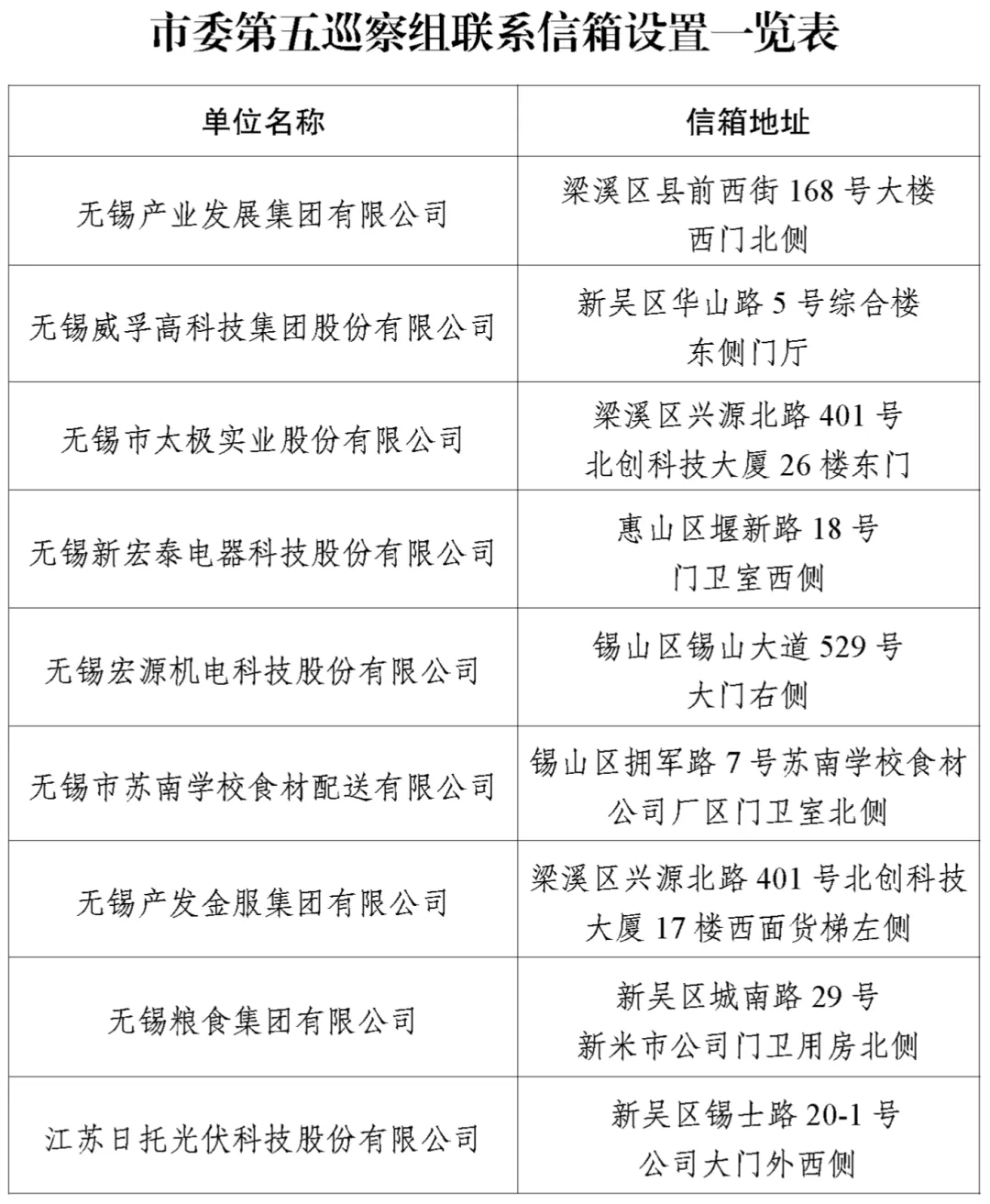 市委巡察公告 根據(jù)市委巡察工作領(lǐng)導(dǎo)小組統(tǒng)一部署,市委第五巡察組對(duì)無(wú)錫產(chǎn)業(yè)發(fā)展集團(tuán)有限公司黨委開(kāi)展常規(guī)巡察,時(shí)間為2024年4月25日至7月5日。根據(jù)有關(guān)規(guī)定,市委巡察組主要受理反映無(wú)錫產(chǎn)業(yè)發(fā)展集團(tuán)有限公司黨委領(lǐng)導(dǎo)班子及其成員、下一級(jí)主要負(fù)責(zé)人以及相關(guān)重點(diǎn)崗位干部(含已離退休、已調(diào)離)的來(lái)信來(lái)電來(lái)訪。其他不屬于巡察受理范圍的信訪問(wèn)題,將按規(guī)定轉(zhuǎn)交有關(guān)部門(mén)認(rèn)真辦理。市委巡察組受理信訪時(shí)間截止到2024年7月2日。 巡察期間設(shè)專(zhuān)門(mén)舉報(bào)電話:18800559869,可同時(shí)接收短信、微信,接聽(tīng)時(shí)間為工作日8:00-18:00; 郵政信箱:江蘇省無(wú)錫市0450號(hào)郵政信箱; 郵政編碼:214031; 聯(lián)系信箱:無(wú)錫產(chǎn)業(yè)發(fā)展集團(tuán)有限公司(梁溪區(qū)縣前西街168號(hào))大樓西門(mén)北側(cè)。 特此公告。 中共無(wú)錫市委第五巡察組 2024年4月25日 ![]() ![]() |
